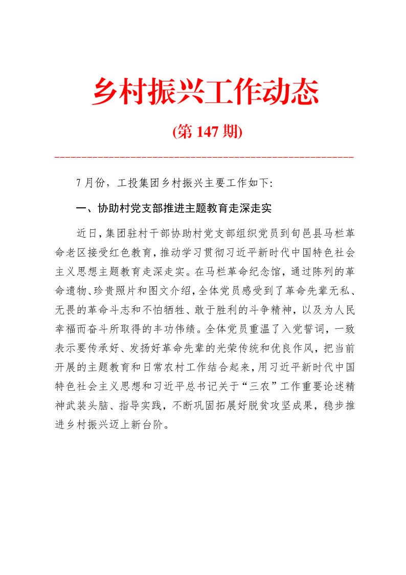 乡村振兴工作动态 (第147期)