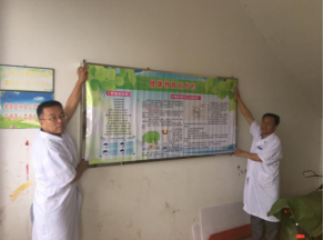 北环医院张庆华副院长和医务科的牛晓宁主任一起将健康教育宣传栏换成新制作的,内容有“爱眼健康歌”、“正确做眼保健操”、“中暑的急救方法”等。